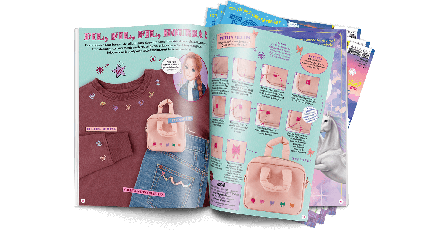 Avec quelques points de couture, du fil coloré et des perles, tu peux facilement décorer tes vêtements et accessoires et te créer un nouveau look. Trop cool !